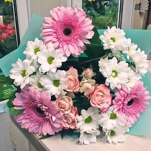ОТЗЫВЫ О БУКЕТЕ «Глоток романтики – букет из кустовой хризантемы и розовых гербер»