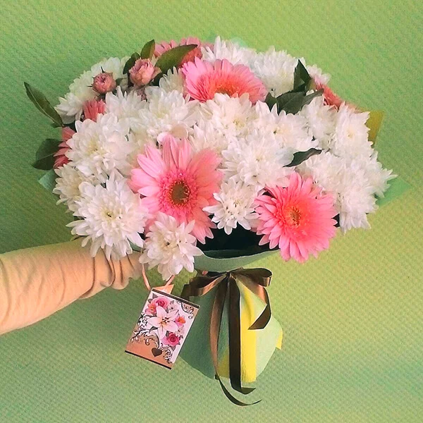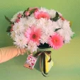 Глоток романтики – букет из кустовой хризантемы и розовых гербер