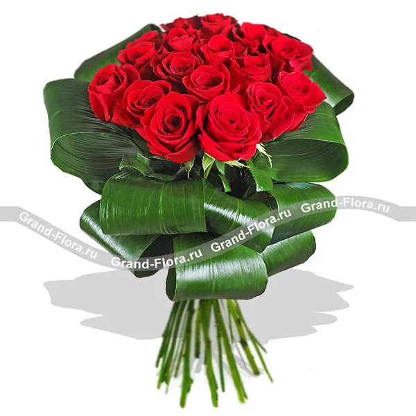Букет Анжелика – это страстные алые розы, оформленные таким образом, что напоминают даму Высшего света, в платье с кринолинами и высокой прической.