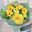 Поздравление с днём рождения станет ярче, если к подарку и приветственным речам добавить букет цветов из ярко-желтых гербер. Такой букет будет радовать Вас не меньше 7 дней*.