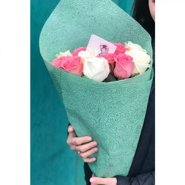 Роза белая (кремовая) и розовая 70 см - 11 шт , упаковка фетр.
