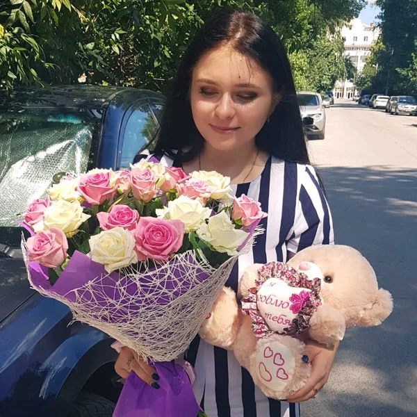 Заказывал букет для сестры на 18-ти летие. Все сделали красиво, розовые розы были ярко-розового цвета. Но тем даже лучше. Учли все мои пожелания. Спасибо Вам)