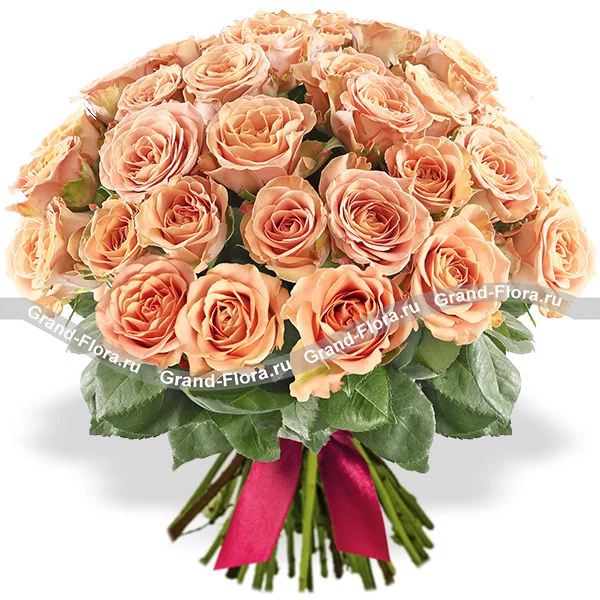 Роза Капучино 60 см. - 33 шт., упаковка, лента.