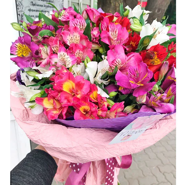 Милый букет из разноцветных альстромерий озарит Вашим вниманием дорогого Вам человека , словно лучики солнца, передав лишь искреннюю теплоту Ваших чувств.