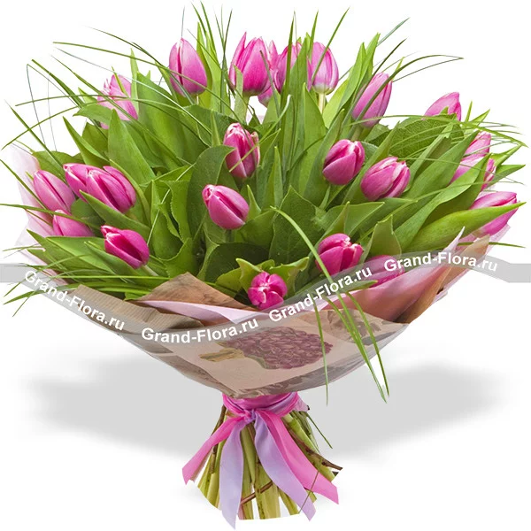 тюльпаны фиолетовые - 31 шт., упаковка крафт, лента.