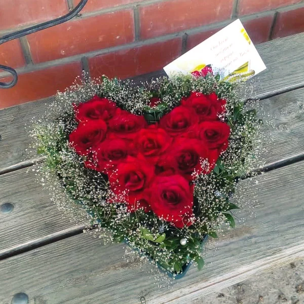решил поздравить жену с днём рождения и так как нахожусь в другом городе, попробовал такую услугу. выбрал этот подарок, потому что обычные букеты - это банально, а здесь в виде сердца из цветов. также добавил коробку конфет. жена осталась довольна. сказала, что привезли в удобное время и хорошего качества. если сомневаетесь пользоваться услугами или нет, то не сомневайтесь и пользуйтесь. всё на высоте!