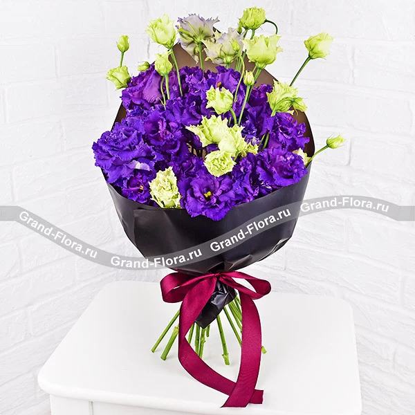 Стандартный: эустома фиолетовая - 11 шт., упаковка, лента. Примерный размер: 20Х20 см.