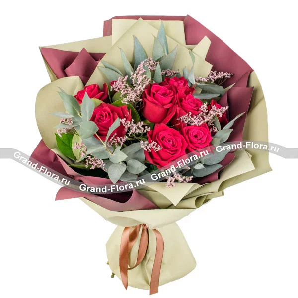 Заказала букет для подруги на День рождения, и она была в полном восторге! Красные розы смотрятся ярко и торжественно, а эвкалипт придает букету легкую свежесть. Доставка была быстрой, цветы пришли вовремя.