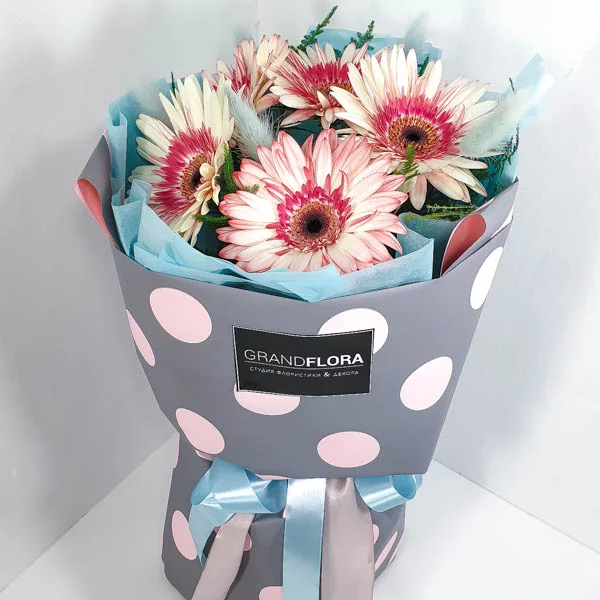 Внимание: возможно изменение оттенка гербер. От белой/кремовой герберы до малиновой. Уточняйте эту информацию перед покупкой
