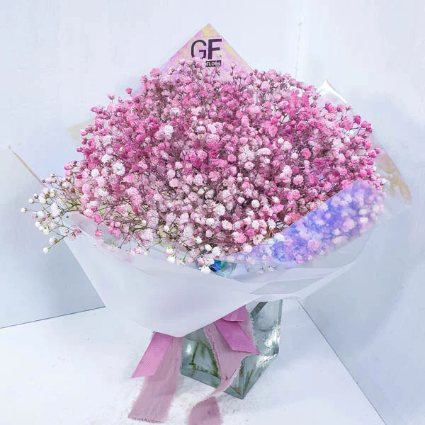 Букет "Моменты радости" - это букет, состоящий из розовой гипсофилы. Гипсофила отностися к семейству гвоздичных цветов.  Розовая гипсофила идеально подходит для создания нежного и женственного букета.