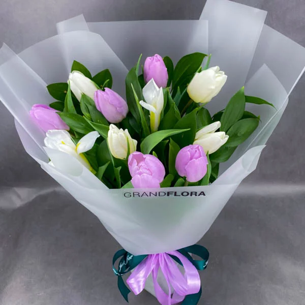 Нежность и романтика в одном букете - это то, что вы получите, когда выберете наш букет из свежих белых и сиреневых тюльпанов. Этот букет - это идеальный выбор для дарения вашей любимой девушке, он произведет незабываемое впечатление и покажет ей, насколько вы ее любите. Красота и чистота белых тюльпанов идеально сочетаются с нежностью сиреневых тюльпанов, создавая неповторимую атмосферу романтики. Доставка букета будет осуществлена в самое удобное для вас время, чтобы ваша любимая могла насладиться красотой этого букета как можно скорее.