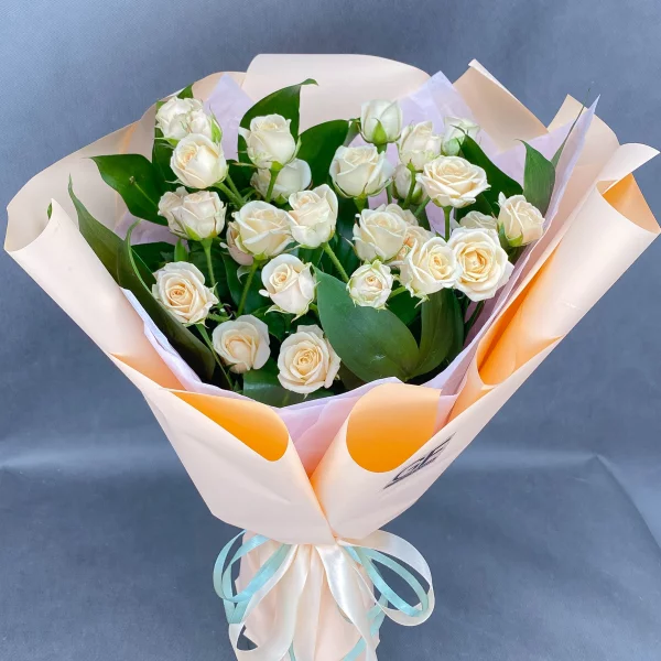 Сливочный зефир – букет из кустовой кремовой розы