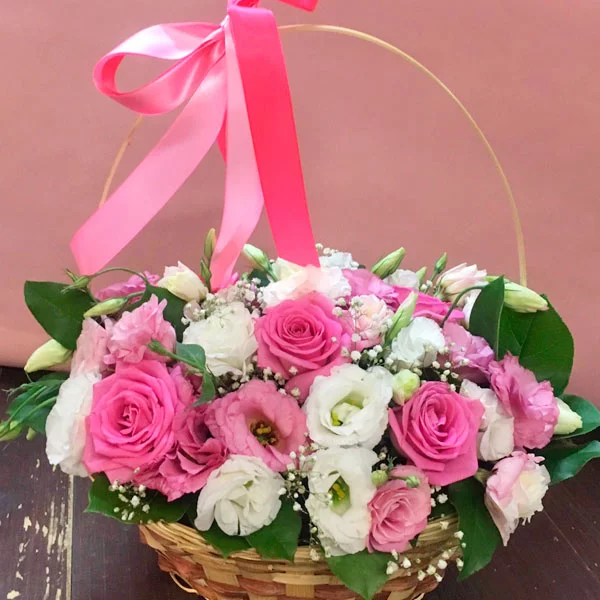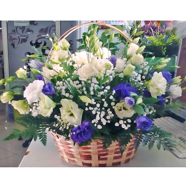 Очень красивая корзиночка. Мы с мамой обожаем эустому, чудесные цветочки. Очень благодарны флористам за прекрасно собранную композицию!